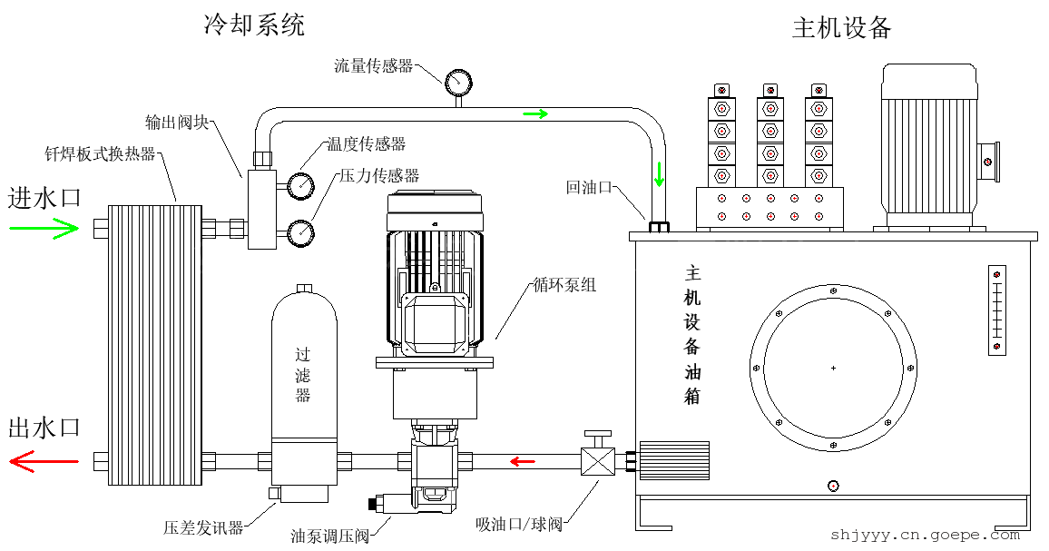 本系列产品配置循环电机泵组和钎焊板式换热器组合可以形成形成安全独立的循环冷却回路,能够完全有效的避免主机系统回油压力冲击对散热器造成损坏,配置滤油器还可以对主机系统的油进行循环过滤达到冷却和清洁双重效果。还可以配置温度传感器、流量传感器、压力传感器等自动化仪器仪表,以实现集成智能化控制。